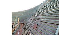 Contractors Rowlands Roofing combined both craftsmanship and innovation to create the sweeping curves of the building’s 820m2 roof, which is topped with 60,000 hand cut clay tiles.